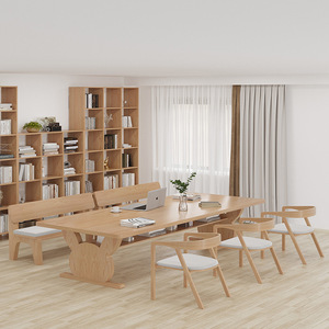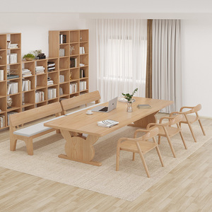 北欧無垢材リビングルームダブル学習テーブル長方形ワークベンチコンピュータデスクログ大型デスクと椅子の組み合わせ