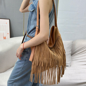 工場卸売 AliExpress 女性バッグ 2025 両面ベルベットタッセルバッグ大容量怠惰なステッチショルダーハンドバッグ