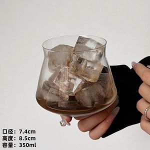 レトロコーヒーショップ透明ガラスラテカップフリップコールドブリューカップアイスアメリカンコーヒーカップドリンクカップコールドドリンク