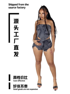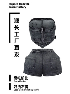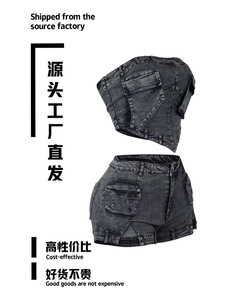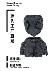 クロスボーダーヨーロッパとアメリカのストリート女性のポケットワークウェアデニムスカートクロススクールバッグバックルプリーツV字型ウエストバッグヒップスカート