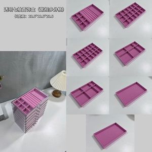 透明な7連のピンクのジュエリーボックス[54グリッド+12グリッド+2空のトレイ]