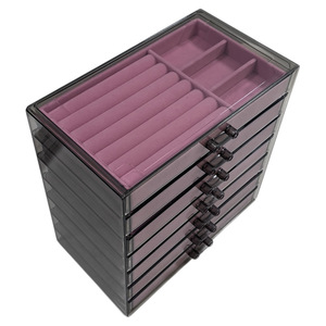 透明グレー7連ピンクジュエリーボックス[レギュラーマルチコンパートメント]