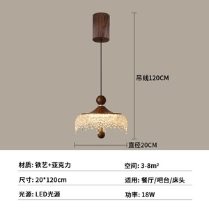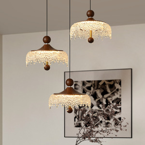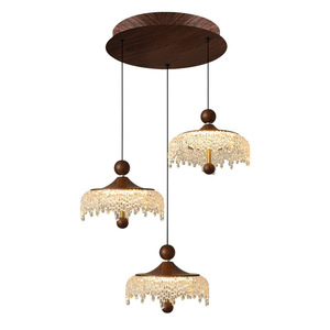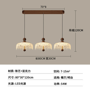 中古风餐厅吊灯胡桃木色三头长盘水滴轻奢高级感吧台过道护眼灯具