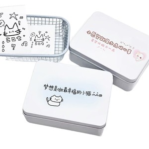 ins 韓国の子猫と子犬かわいいブリキの箱収納ボックス小さなカードデスクトップ紙ストリップステッカー漫画収納ボックス