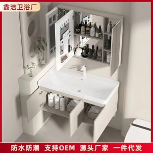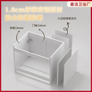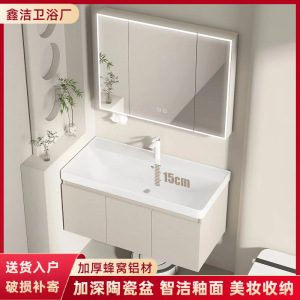厚みのあるハニカムアルミニウムバスルームキャビネット、クリームスタイルのセラミック一体型洗面器、深めの大きな洗面器、洗面台と洗面台キャビネットの組み合わせ