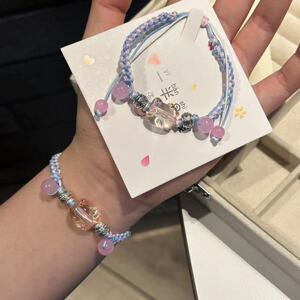 ハローキティ手織りブルーピンクブレスレットニッチかわいい学生ガールフレンドギフトハローキティアクセサリー