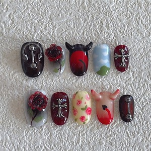オリジナル海外ホットガールホリデー限定ハロウィン手作りつけ爪コレクション アーモンドネイル ロングチップネイルシール