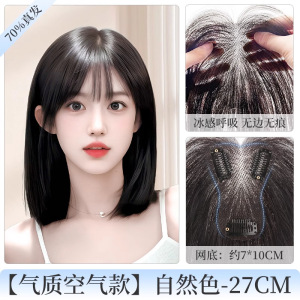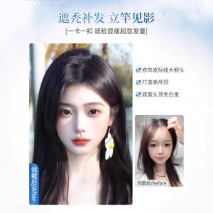 头顶假发片刘海假发女自然前额无边无痕遮白发真发混丝轻薄补发片