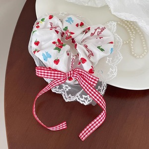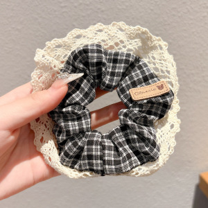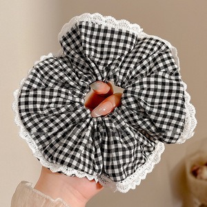 2#レースの縁が付いた赤いチェック柄のヘアゴム