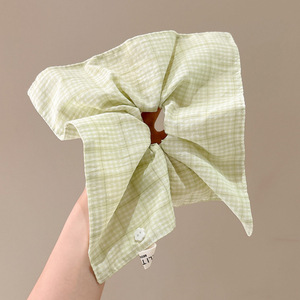 4#チェック柄(ピュアグリーン)ダブルスクエアスカーフ 約25×25cm