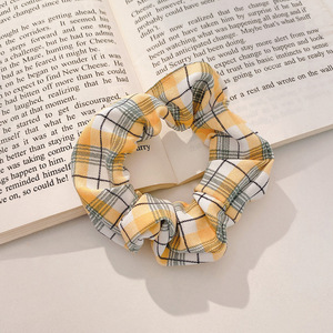 1#ブルーのチェック柄のスカーフ ヘアゴム