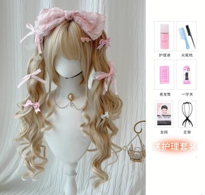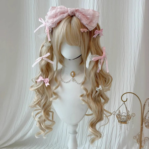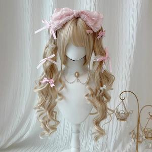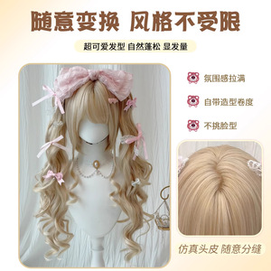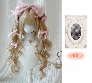 【乙女夢日記】ロリータロング巻き毛人形風ローマ巻き虎口クリップ付きのかわいいフルヘッドギアをした女性用ウィッグ