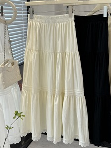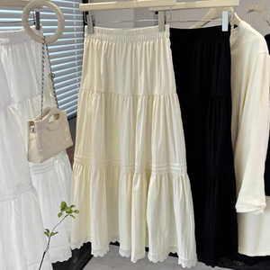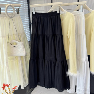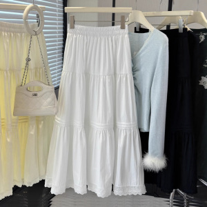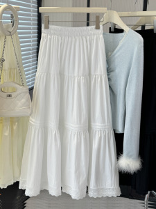 初恋スタイル白スカート女性の夏の 2025 新しいフレンチスタイルロングスカートハイウエスト A ラインふわふわケーキスカート