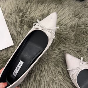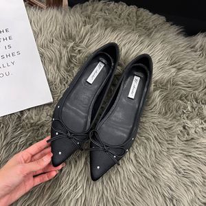 现货~内增高女鞋法式水钻尖头单鞋2025春晚晚风蝴蝶结缎面软底鞋