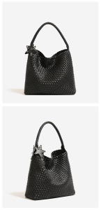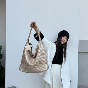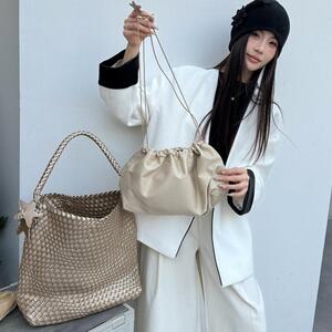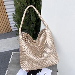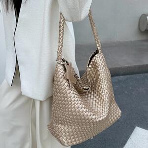 跨境枪枪同款编织水桶包香槟腋下包包女大容量小众高级手提单肩包