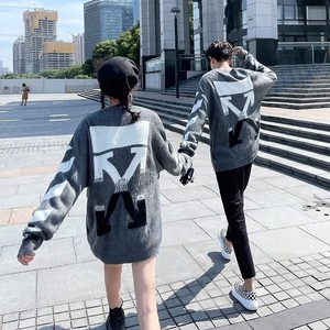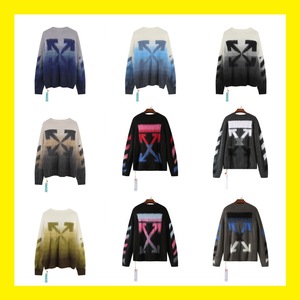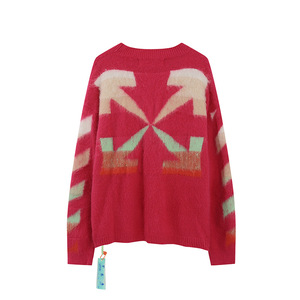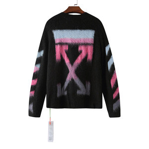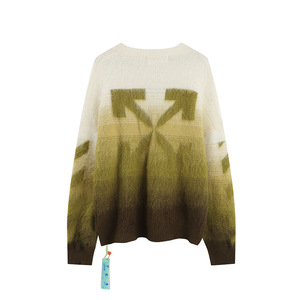 卸売クラシックオフセーターロングコートowトレンディなブランドグラデーションアローモヘアニットセーターウールカップル着用