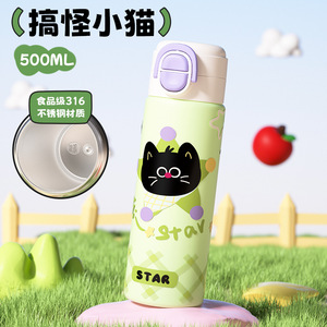 新しい漫画ダブルドリンクバウンスカップ 316 断熱カップ、学校に行く男の子と女の子向けの見栄えの良いポータブルストローウォーターカップ