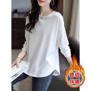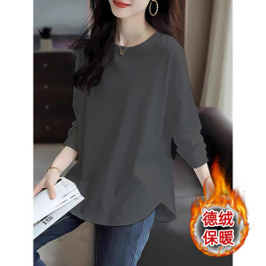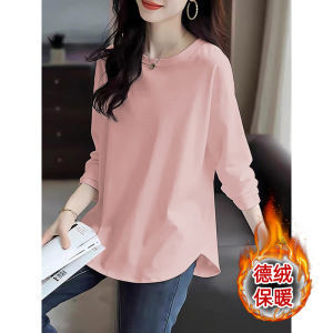 2025秋冬季新款港风洋气德绒中长款长袖打底衫弧形下摆设计女装潮
