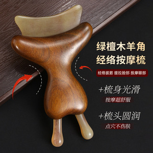 Little Bee 多機能マッサージコームグリーンサンダルウッドホーン経絡腱マッサージスティックアイマッサージコームドロップシッピング