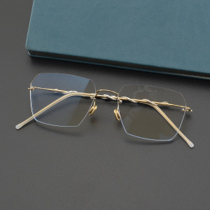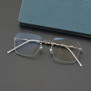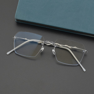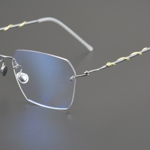 リンデ同スネークイヤー オートクチュール版 純チタン925シルバー 超軽量フレームレスメガネ ネジなし ビジネス ファッション 度付き