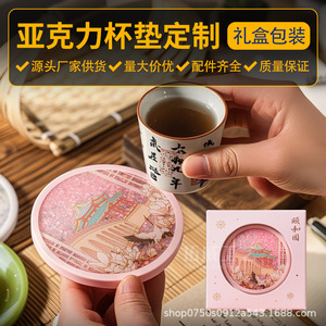 ソースファクトリーアクリル流砂コースター断熱滑り止めお土産ソーサークリエイティブ工芸品文化的で創造的なギフト