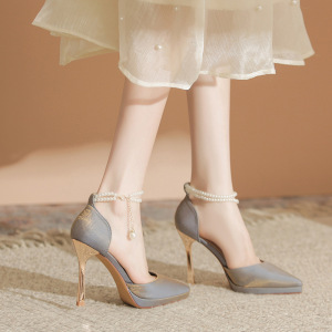 1085A 防水プラットフォームブルーのエレガントなハイヒールの女性の夏中空リボンハイヒールサンダル女性のための