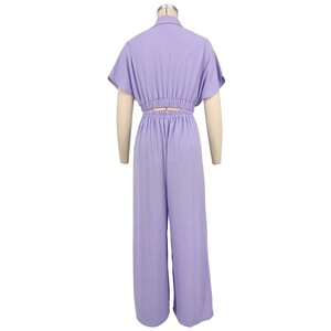 8722 ヨーロッパとアメリカのアフリカの国境を越えた外国貿易ソリッドラペル V マウスバットトップワイドレッグパンツファッショナブルなルーズスーツ