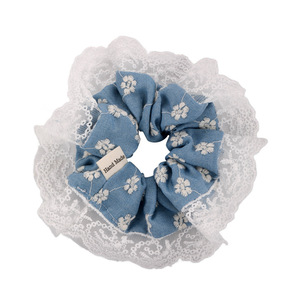 デニムブルーの花レースヘアゴム女性用韓国風優しい大きなヘッドバンドハイエンド多用途ヘアアクセサリー