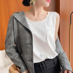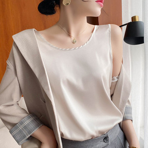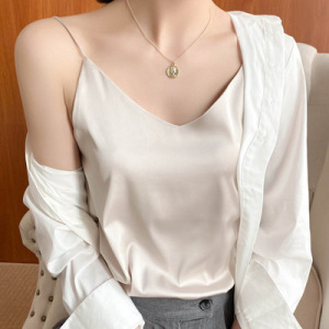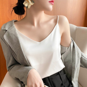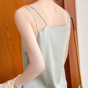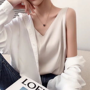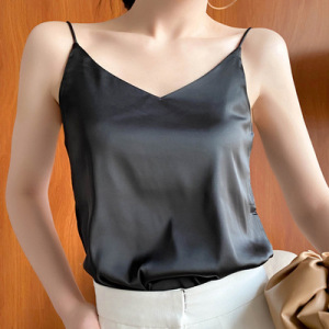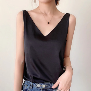 シルクキャミソールレディースインナースーツ白黒ボトムサテンマルベリーシルクトップス小さな夏のVネック