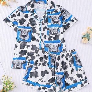 国境を越えた貿易の新しい女性用パジャマ四季牛プリントラペル半袖ショーツ快適なヨーロッパとアメリカのホームウェアセット