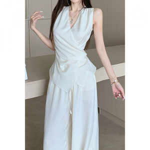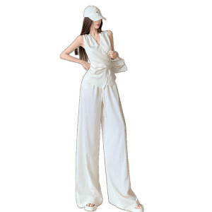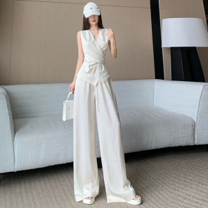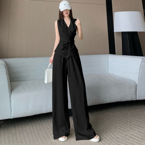 无袖系带上衣套装女夏高级感韩系夏日穿搭一整套阔腿裤两件套减龄