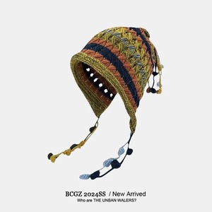 日本製手作りかぎ針編みカラフルなウールの帽子女性の秋と冬厚く暖かい耳保護ニット帽子タッセルプルオーバー帽子