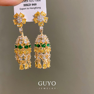 银针锆石花朵水滴风铃耳环高级感轻奢小众耳钉是还能够百搭耳饰女