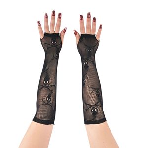 スカルグローブハロウィン装飾コスプレパフォーマンスグローブミッドレングスメッシュハーフフィンガー通気性メッシュスリーブ