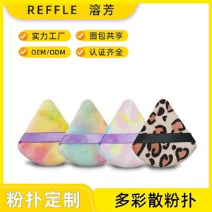 カスタマイズされた絞り染めヒョウ柄パウダーパフ三角ルースパウダーパフ多色混合色扇形パウダーパフ三角スポンジパフ卸売