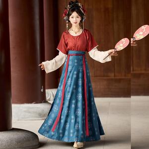 Yaopu Yanyanの新しいオリジナル唐漢服プリントタンカラー唐ベスト春と夏のラウンドネックシャツ腰丈スカートデイリースタイル