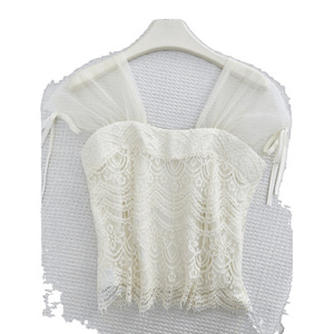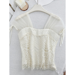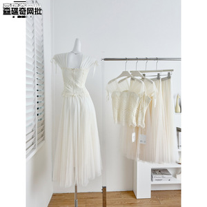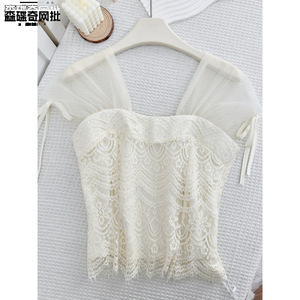 2025夏新作フォレストスタイルスーパーフェアリーレーススプライシングキャミソールトップ万能メッシュスカート2点セット