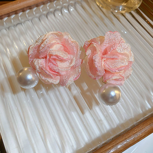 1 # ジルコンパール生地フラワーバッドタッセルイヤーフック