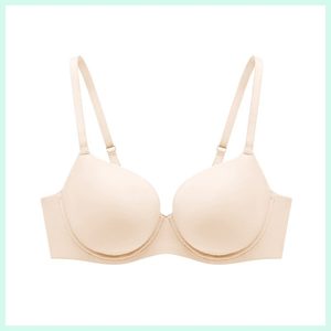 【Xiao Qingti 2枚】Ya 下着 大きい胸 小さく見える シームレス 薄手ブラ フルカップ サイドギャザーブラ スキンカラー コットン