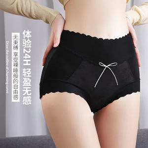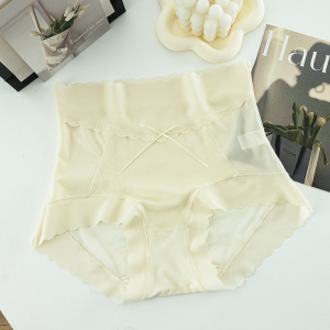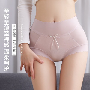 新しい女性の下着、甘い女の子のハイウエスト通気性ヒップカバーシンプルな和風ブリーフ、薄くてシームレスで優しい