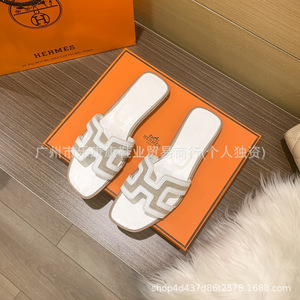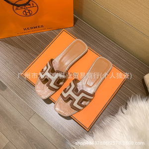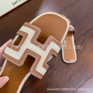H スリッパ レディース 2025 手作りカラーブロックフラットソールアウターウェアスリッパ怠惰な多用途休暇オープントゥクラシックサンダル