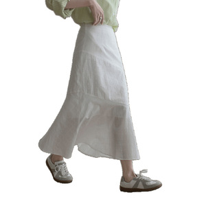 女性のためのスプライスホワイトスカート夏 2025 新しいデザイン気質スカート小柄なロングスカート