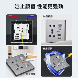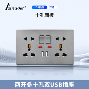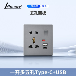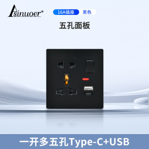 146型スイッチソケット タイプC PD急速充電 USBインターフェース付き 1オープンマルチ5穴ソケット 2オープンマルチ10穴