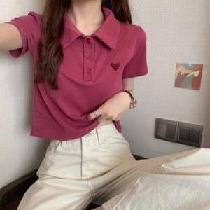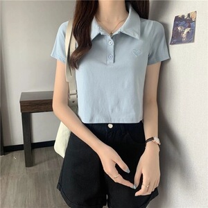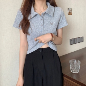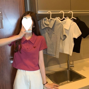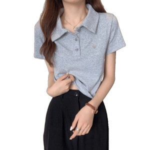 夏の新しいスタイルのファッショナブルなデザインニッチスリムポロカラー半袖Tシャツ女性用シックな香港スタイルのショートトップトレンディ