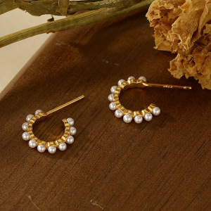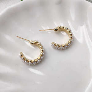 女性向けのクロスボーダー人気のヨーロッパとアメリカのイヤリング、ニッチなデザイン、多用途のゴールドイヤリング、フレンチライトラグジュアリー、ハイエンドのパールイヤリング
