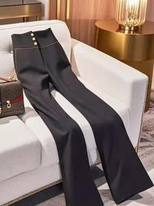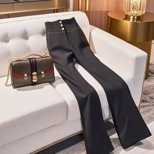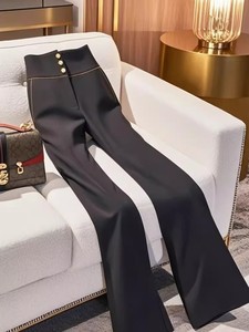 今年人気の女性用黒パンツ2025春レイジーリラックスハイウエストスリムストレートレッグパンツ