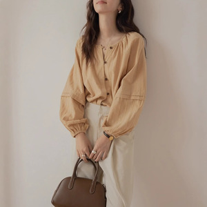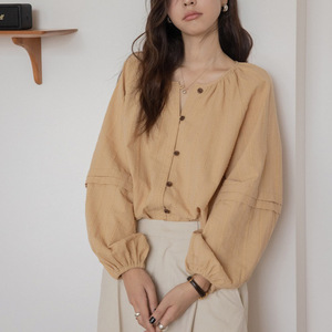 ランタンスリーブシャツ 2025 春夏新作ルーズジャカードカーディガンラウンドネックアウターハイエンドシャツトップ