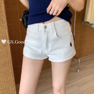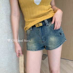 GS.GOOD START 夏万能クラシックロゴ刺繍ハイウエストスリムデニムショートパンツ(ベルト付き) G3018