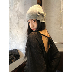 韓国イン手作りリボンニットウール帽子女性のための初春の新しいスタイル遊び心とかわいい顔が見える小さなつば帽子