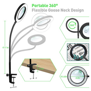 ブラックの外観 - 調光と色調整 - 20X 拡大鏡 - アルミニウムクリップ